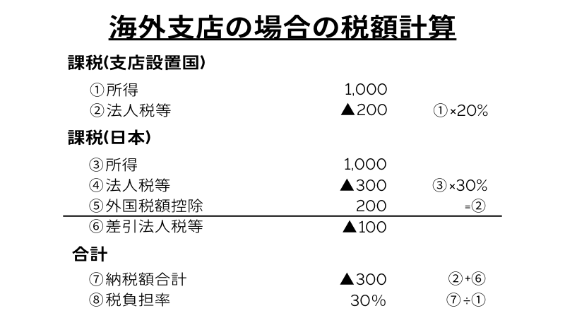 税務上の特徴として、一般的には海外支店の所得に対して現地で課税された上で、