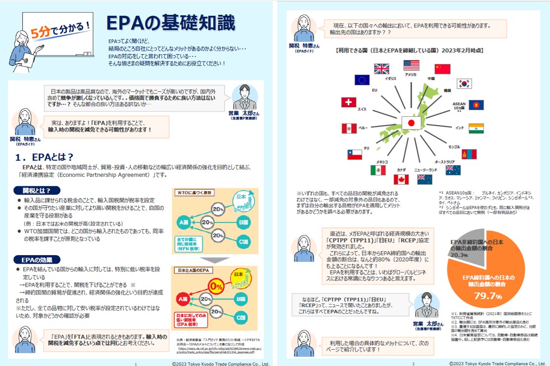EPAをこれから学ぶ必要がある方向けに、EPAの概要から利用、業界別EPA運用マニュアルなどEPAに関する基礎知識に関して説明しています。
