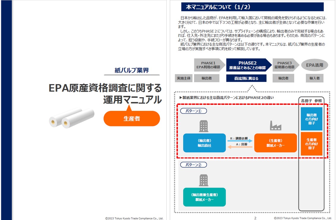 紙パルプ業界向けに、EPA/FTAを利用するまでに必要なフロー、業務を業界の製品特性、並びにサプライチェーン上の役割を踏まえて、必要な事項に絞って解説しています。