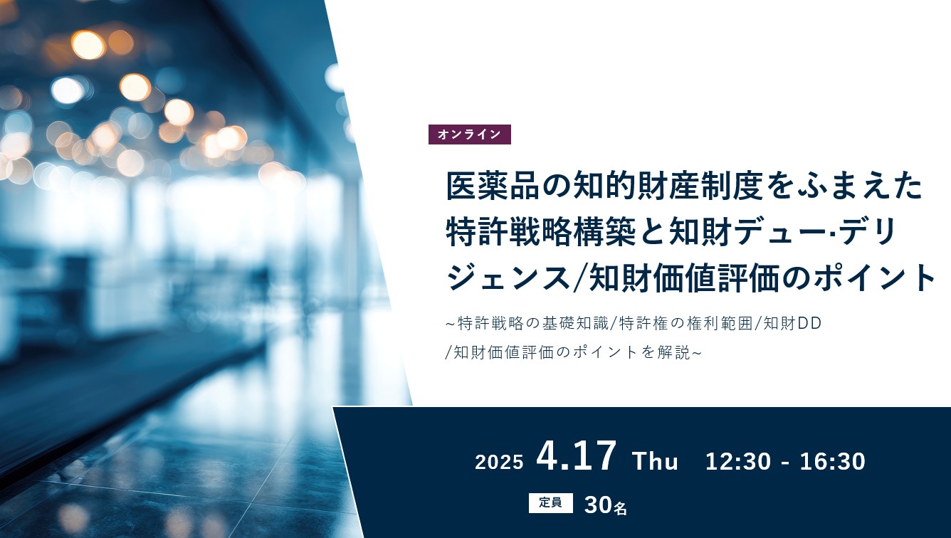 医薬品の知的財産制度をふまえた特許戦略構築と知財デュー·デリジェンス/知財価値…